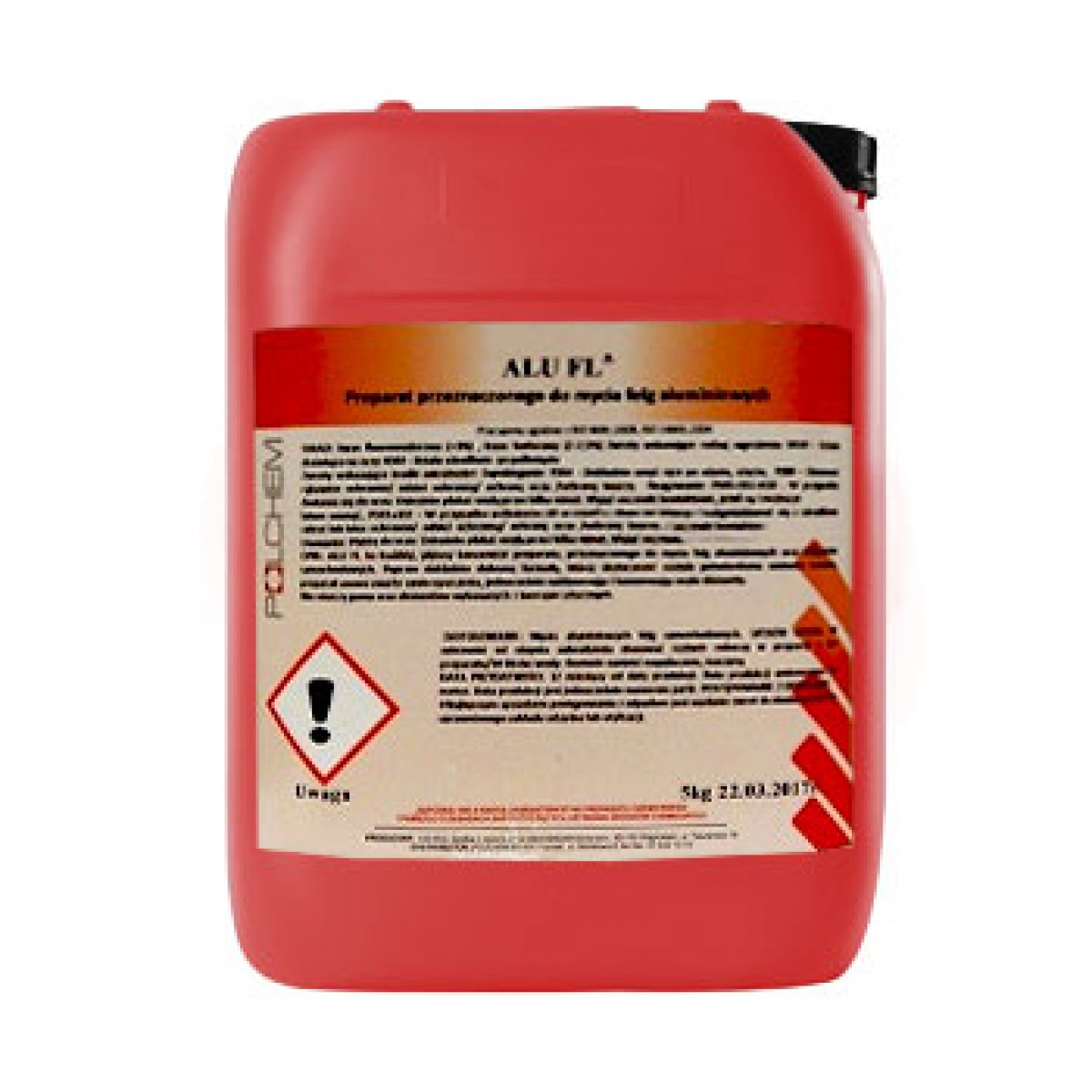 ALU FL to kwaśny, płynny koncentrat preparatu, przeznaczonego do mycia felg aluminiowych oraz kołpaków samochodu. Poprzez dokładnie dobraną formułę, której skuteczność została potwierdzona wieloma testami, preparat usuwa silne zanieczyszczenia, osady powstające podczas zużywania klocków hamulcowych jednocześnie nabłyszczając i konserwując myte elementy. Tam gdzie zwykły preparat do mycia felg nie zadziała, zaskoczy Cię ALU FL. Nie niszczy gumy oraz elementów wykonanych z tworzyw sztucznych. Nie nanosić na lakier samochodowy. W zależności od stopnia zabrudzenia stosować roztwór roboczy w proporcji 1 litr preparatu/10 litrów wody. Roztwór nanieść rozpylaczem, maszyną wysokociśnieniową lub poprzez system dozowania myjni automatycznej, odczekać 1-2 min., po czym spłukać mytą powierzchnię czystą wodą, najlepiej pod wysokim ciśnieniem. Do produkcji preparatu wykorzystano składniki nietoksyczne oraz bezpieczne dla ludzi i środowiska naturalnego. Biodegradacja ponad 90%.
