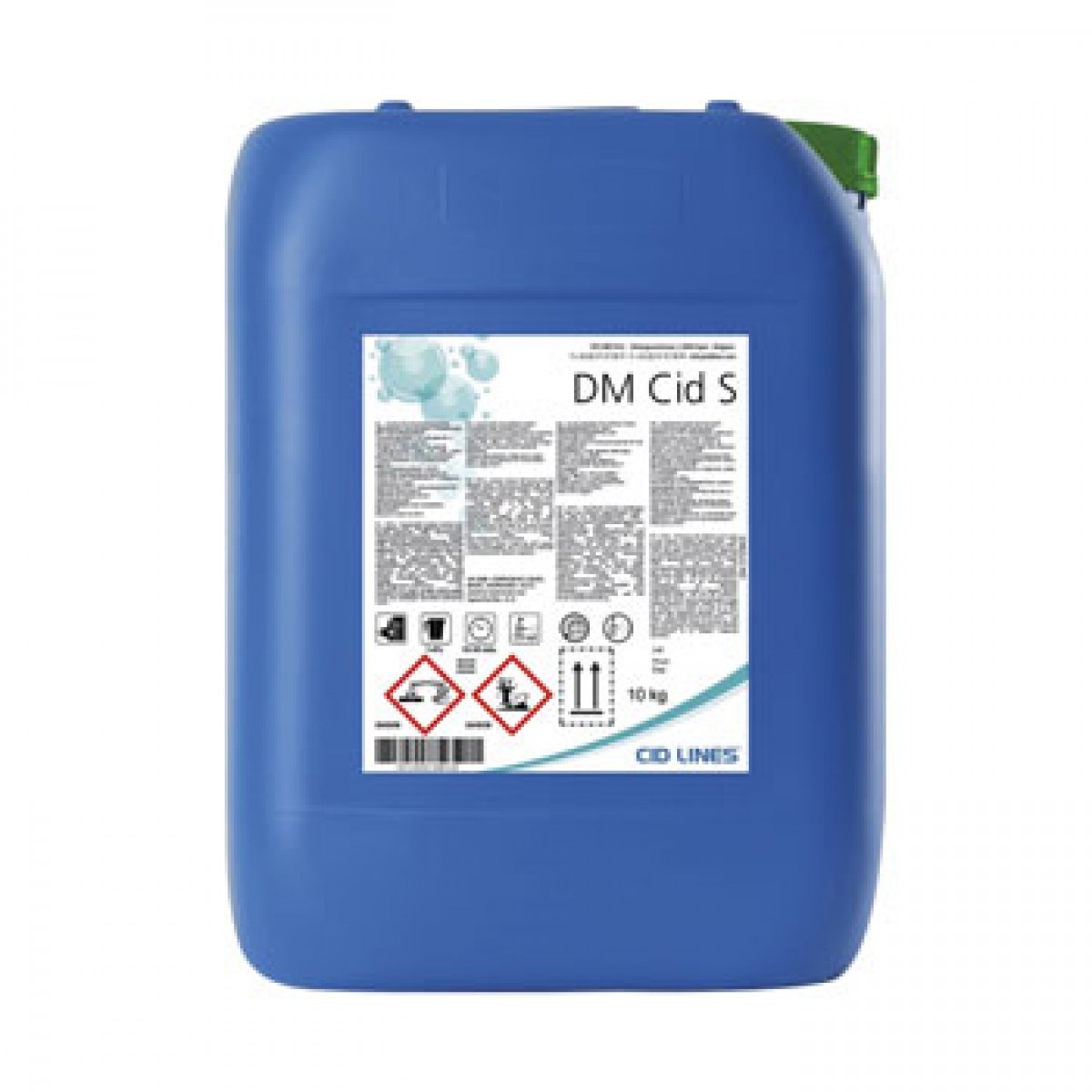 DM CID S-w oparciu o wieloletnie badania problematyki zanieczyszczeń powstał preparat przeznaczony dla nowoczesnego przemysłu. DM CID S jest wysokoskoncentrowanym, alkalicznym, niskopianowym, płynnym preparatem posiadającym dodatki niejonowych i jonowych związków powierzchniowo czynnych, które zmiękczają zanieczyszczenia i osady pochodzące z białka, tłuszczu i cukrów. Zawartość soli fosfoniowych ogranicza występowanie białych nalotów po procesie mycia ograniczając potrzebę częstego kwasowania. Polecany do mycia wyparek, pasteryzatorów, homogenizatorów, zbiorników magazynowych i urządzeń w obiegu zamkniętym CIP. Wielokrotne i systematyczne stosowanie preparatu powoduje zabezpieczenie czyszczonych powierzchni przed wtórnym osadzaniem trudno usuwalnych złogów. Łatwo wypłukiwany. Nabłyszcza myte powierzchnie ograniczając potrzebę kwasowania. Nadaje się do mycia stali szlachetnej, tworzyw sztucznych, ceramiki oraz betonu. Nie stosować na powierzchniach wykonanych z aluminium.