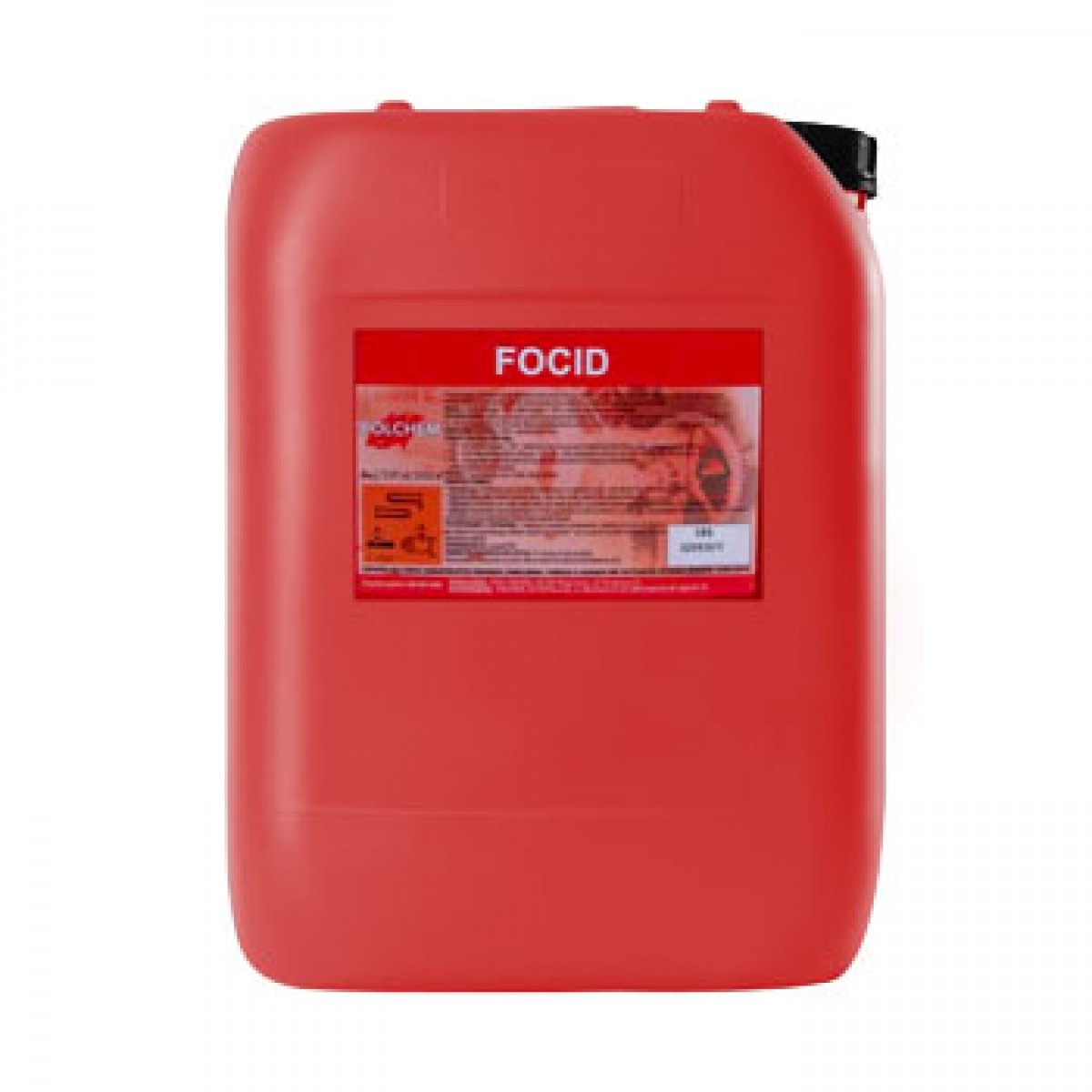FOCID DR to wieloskładnikowy, wysokopianowy koncentrat preparatu myjącego w płynie. Frakcją zakwaszającą są kwasy owocowe i mineralne, dlatego preparat ten jest bardzo bezpieczny dla obsługi, mytych powierzchni oraz środowiska naturalnego. Zawiera w swoim składzie nowoczesne związki powierzchniowo czynne o wysokim stopniu skuteczności i biodegradacji. Wypróbowany wszechstronnie do usuwania uporczywych osadów z nawarstwień kamienia białkowego, wodnego oraz rdzy i przebarwień. Bardzo skutecznie usuwa zanieczyszczenia skumulowane na poidłach drobiu, posadzkach, ścianach, obudowach maszyn i urządzeń. Nabłyszcza i konserwuje myte powierzchnie. Posiada frakcję biostatyczną. W stężeniu roboczym dzięki dodatkom osłonowym jest bezpieczny dla aluminium, tworzyw sztucznych oraz stali nieszlachetnej. Łatwo wypłukiwalny. Polecany do stosowania w systemach centralnego mycia (niska lepkość), maszynach ciśnieniowych oraz wytwornicach piany. Posiada wbudowane komponenty antykorozyjne.