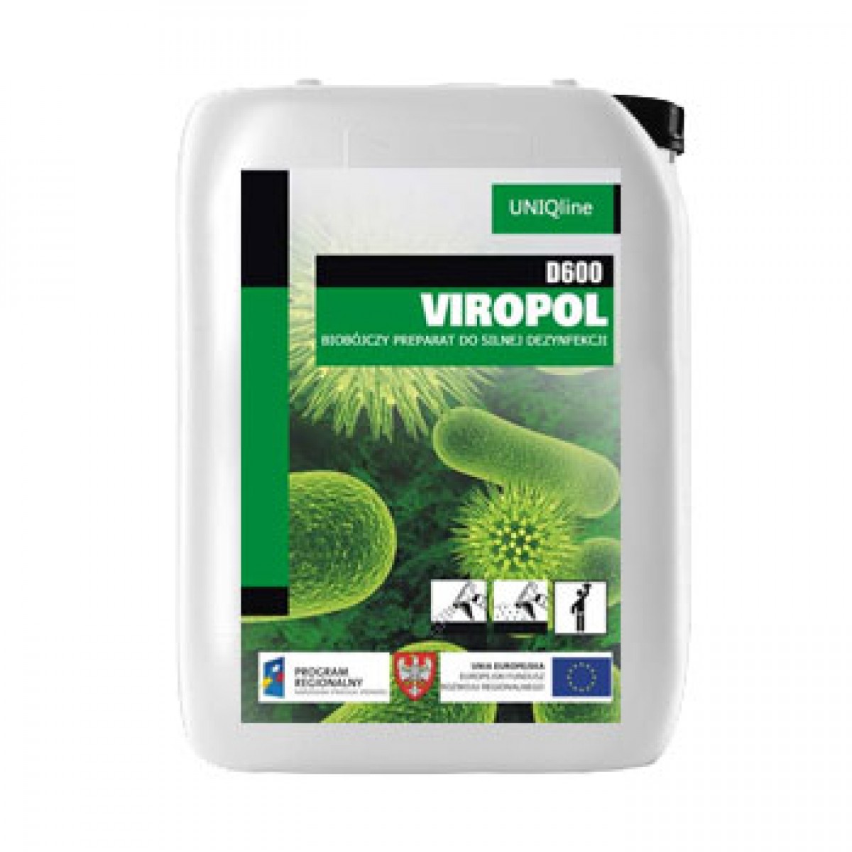 VIROPOL to nowa generacja preparatów dezynfekujących przeznaczonych do stosowania wszędzie tam gdzie wymagany jest wysoki stopień czystości mikrobiologicznej. Jest wysokowydajnym i skutecznym preparatem posiadającym szerokie spektrum biobójcze. Dzięki synergistycznemu połączeniu skuteczności czwartorzędowych chlorków amoniowych, aldehydów, alkoholi i terpen wykazuje następujące właściwości: